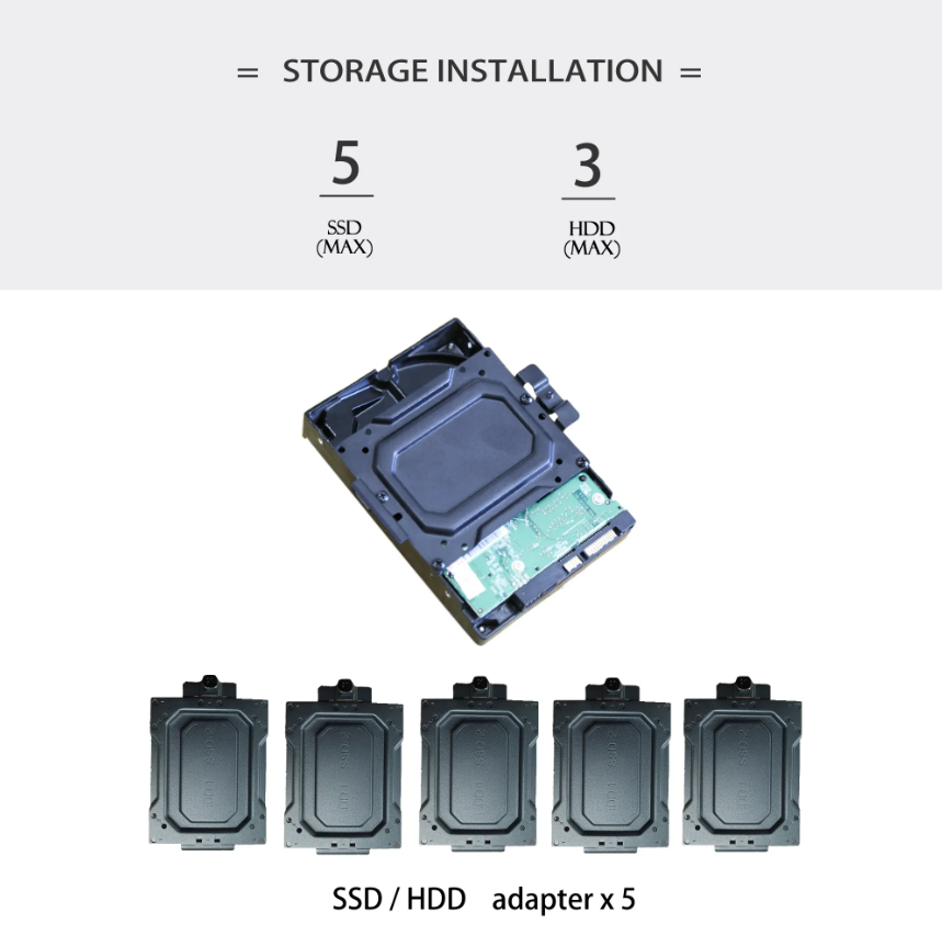 Drive Bays: 2,5”: 3+2 en 3,5”: 1+4